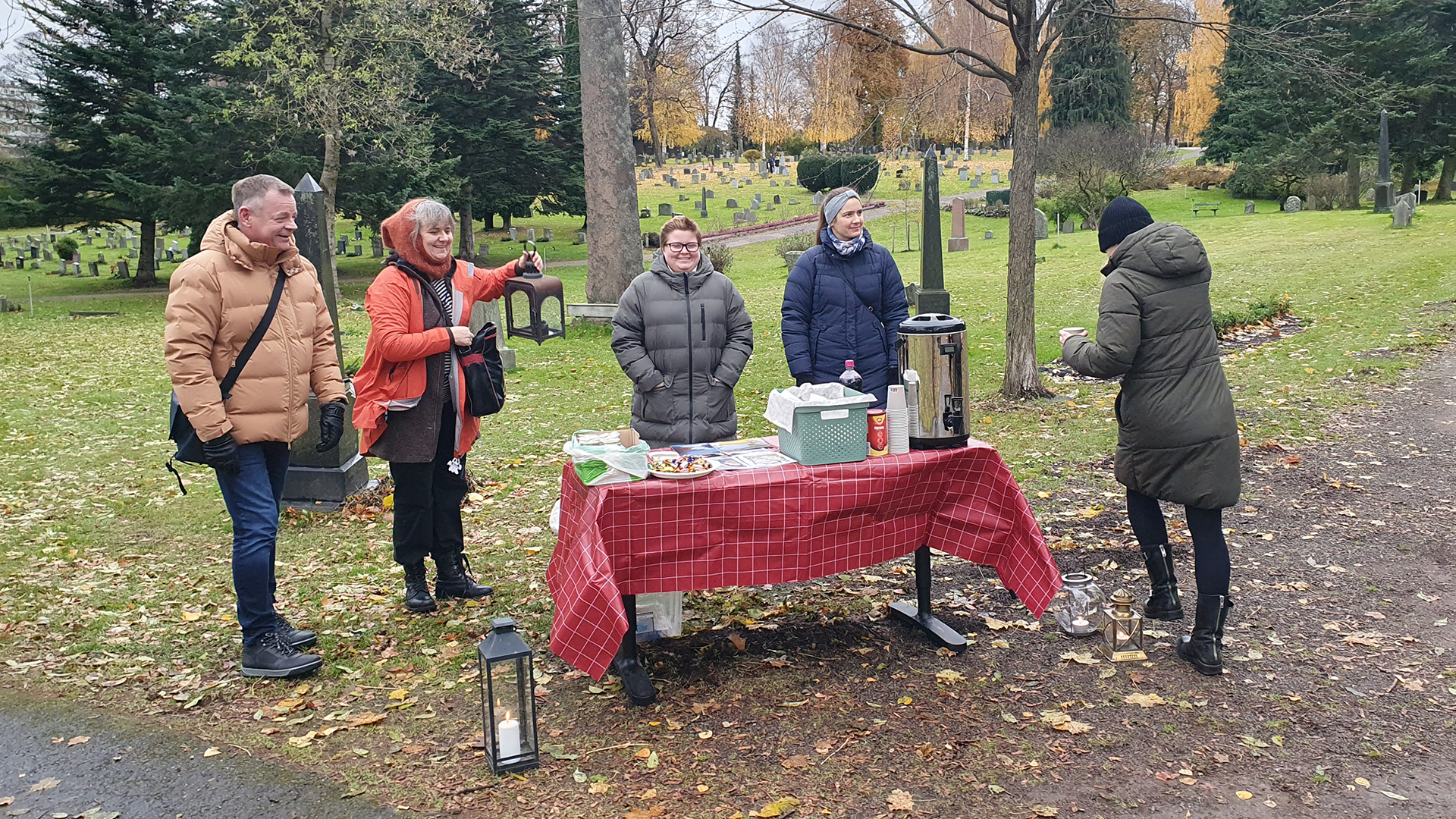 - Ordne med bord og gjerne noen stoler der man står godt synlig, men ikke i veien for besøkende på gravplassen