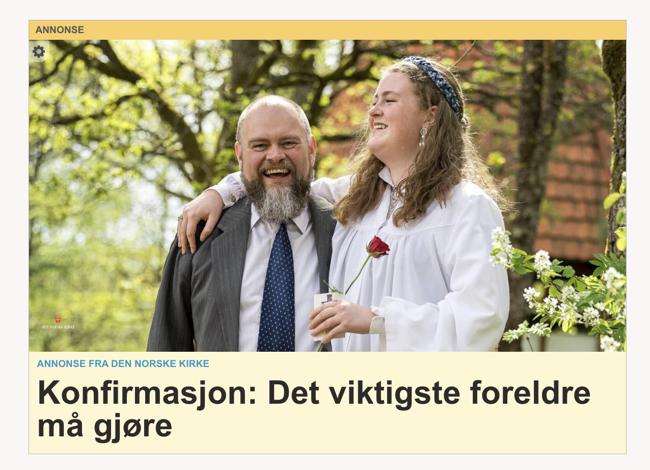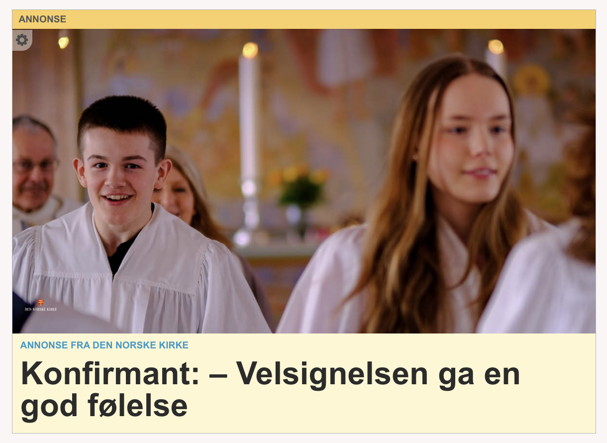 I uke 40-42 vil det være annonser for konfirmasjon i Den norske kirke i mange digitale over hele landet.